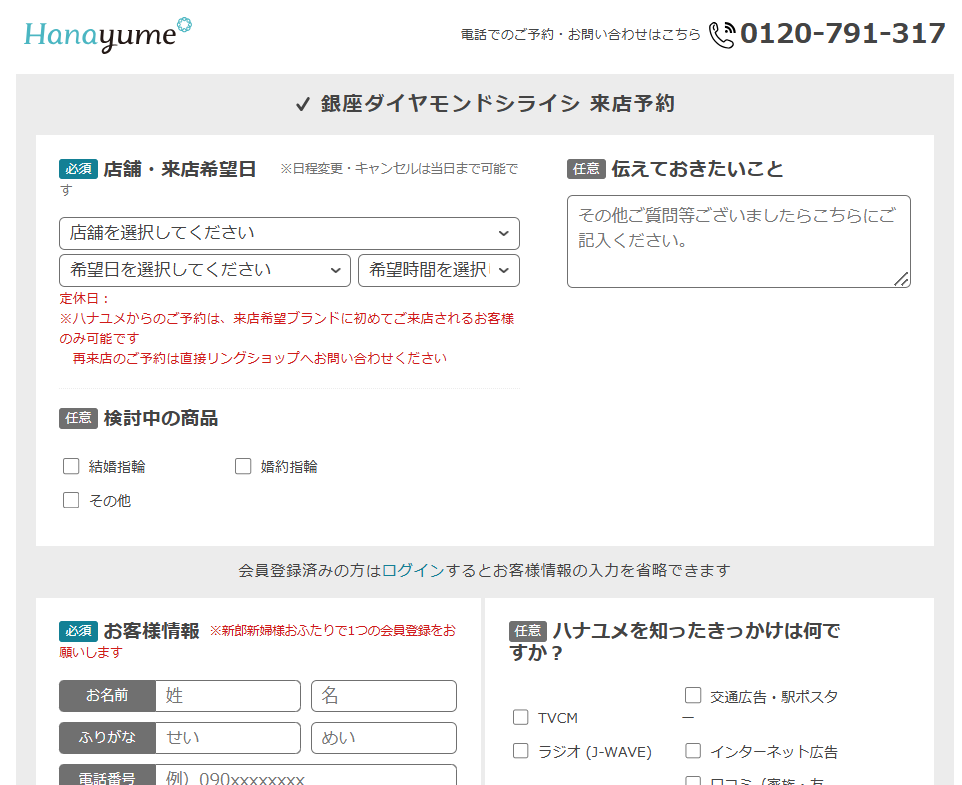 ハナユメからの来店予約方法【来店予約特典:指輪代10%OFF + 7,000円分ギフトカード】