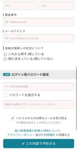 間違いがないか確認し、下の「この内容で予約する」ボタンを押します。